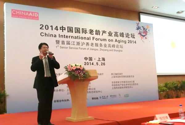 2014年5月26-28日,第九届中国国际养老及康复辅具医疗博览会(CHINA AID 2014)于上海世博展览馆举办。开幕当日,受上海民政领导邀请,群业咨询郭玉群总经理率团队成员参加,并于2014中国国际老龄产业高峰论坛暨首届江浙沪两省一市老龄产业高峰论坛上做“中国养老产业的挑战和机遇”的主题演讲。